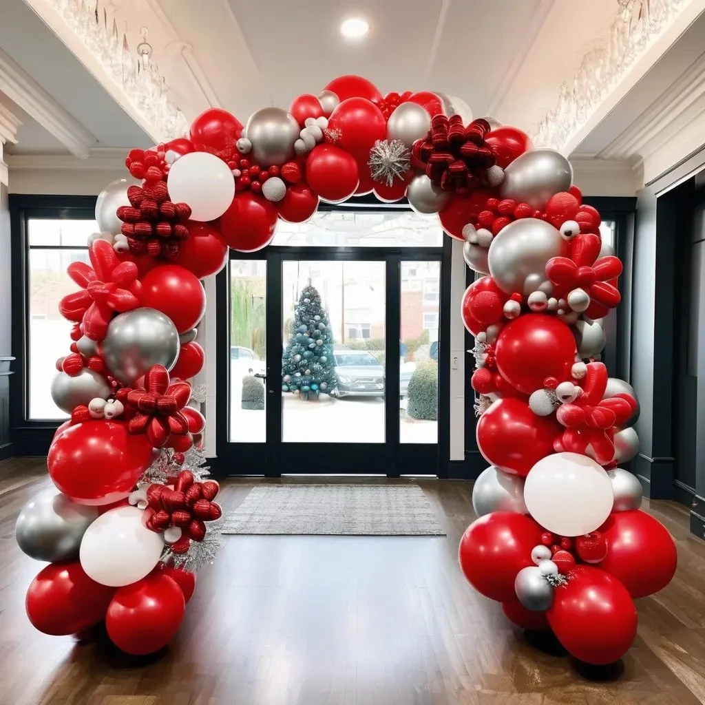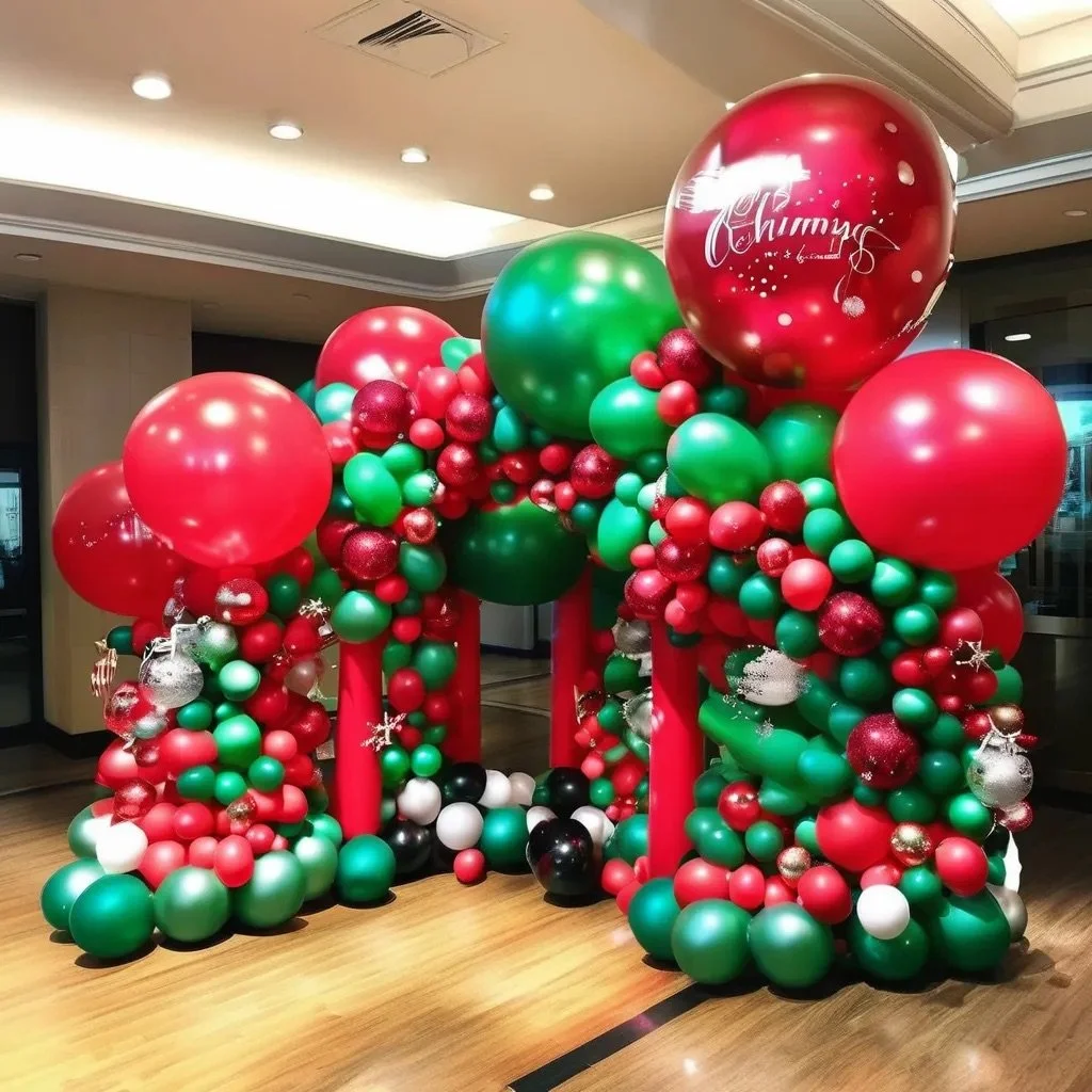Holiday Balloon Decor Christmas Trees, wearable antlers and “beards”